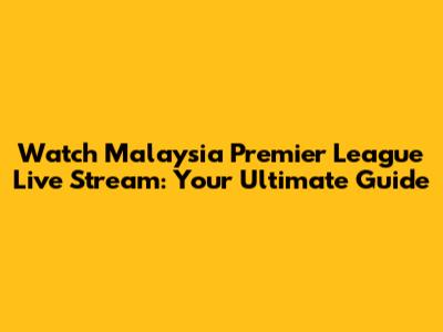 Watch Malaysia Premier League Live: Your Ultimate Guide