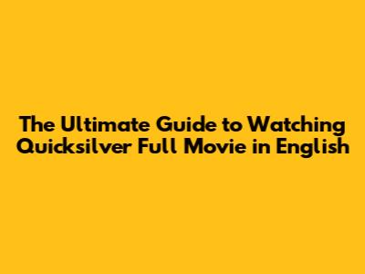 The Ultimate Guide to Watching Quicksilver Full Movie in English