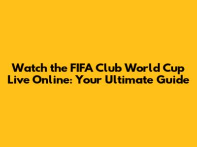 Watch The FIFA Club World Cup Live Online