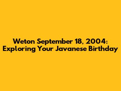 Hey guys! Ever wondered about the secrets hidden in your birthdate, according to Javanese tradition? If you were born on September 18, 2004, you've got a weton to explore! Let's dive into what weton means and uncover the unique traits and characteristics associated with your special day. Understanding your weton is like unlocking a personal treasure map, offering insights into your personality, potential, and life path. It’s a fascinating blend of astrology, numerology, and cultural wisdom, all rolled into one neat package. So, buckle up and get ready to discover the intriguing world of your weton!