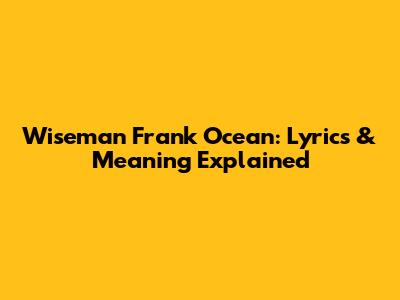 Wiseman Frank Ocean: Lyrics & Meaning Explained