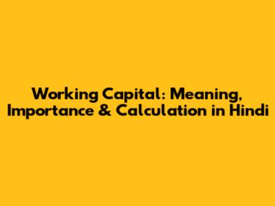 Working Capital: Meaning, Importance & Calculation In Hindi