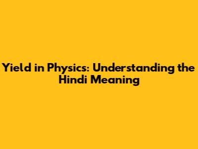 Yield In Physics: Understanding The Hindi Meaning