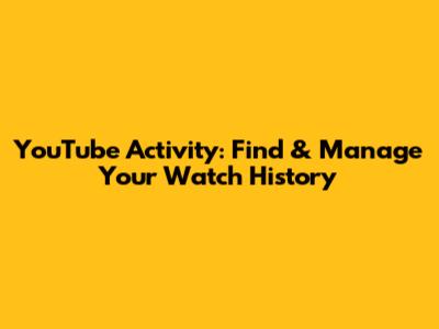 YouTube Activity: Find & Manage Your Watch History
