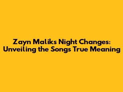 Zayn Malik's Night Changes: The Song's True Meaning
