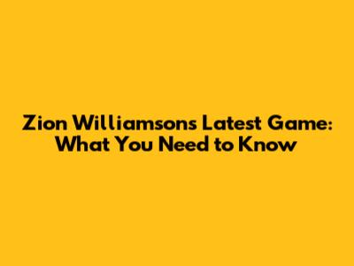 Zion Williamson's Latest Game: What You Need To Know